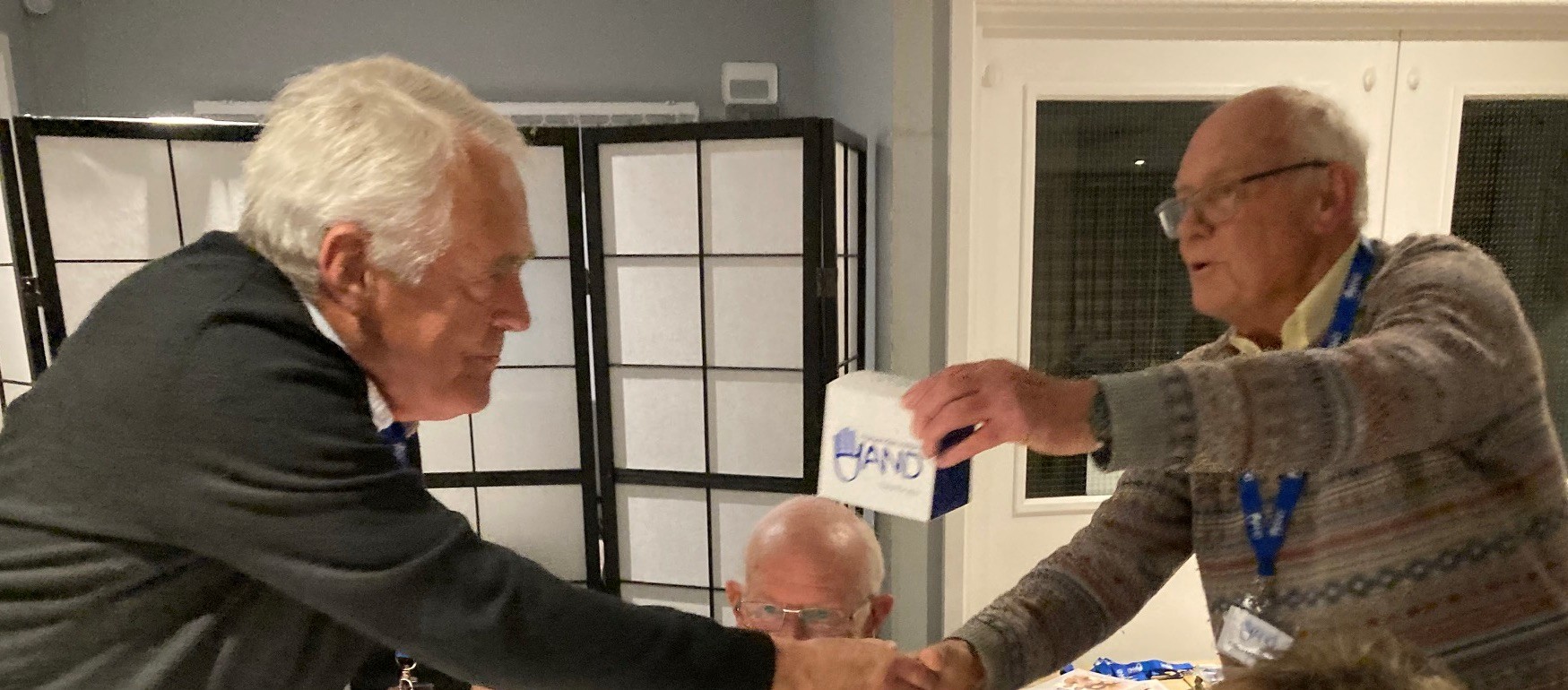 Over 30 people attended HHH’s AGM which was held in the Plough and Harrow Function Room on Thursday 23rd October 2025. The Chairman, Chris Marsden, began the meeting by presenting long serving members with a gift mug.